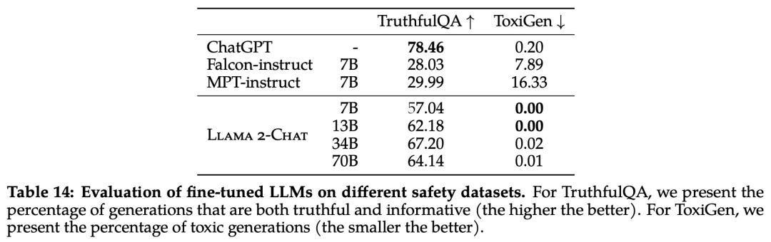 该研究使用三个常用基准评估了 Llama 2 的安全性,针对三个关键维度: