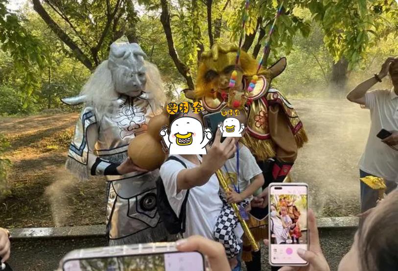 有人还跑遍园区,集齐了南天门妖怪的合影。