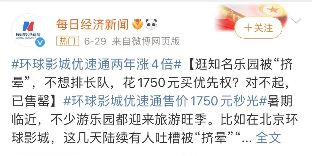 前段时间,“环球影城优速通烧光中产钱包”也冲上热搜。