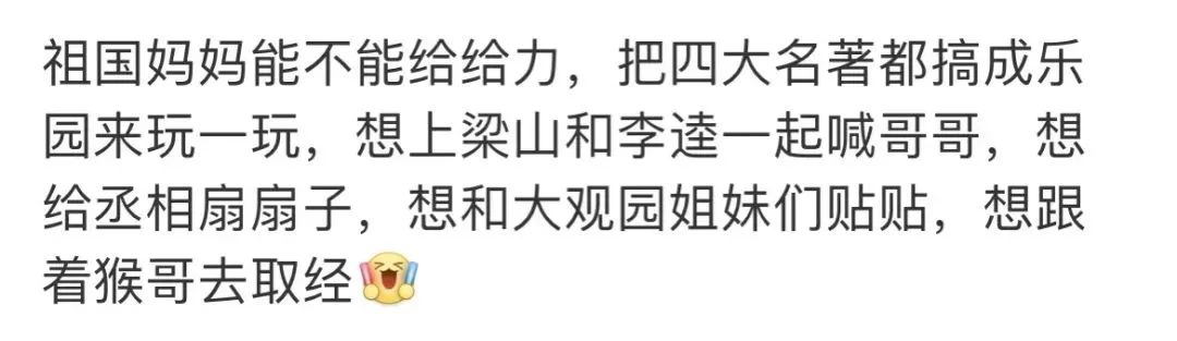 还有人想要《山海经》主题乐园,把从朱雀到玄武,从鲲鹏到白虎都感受一遍;