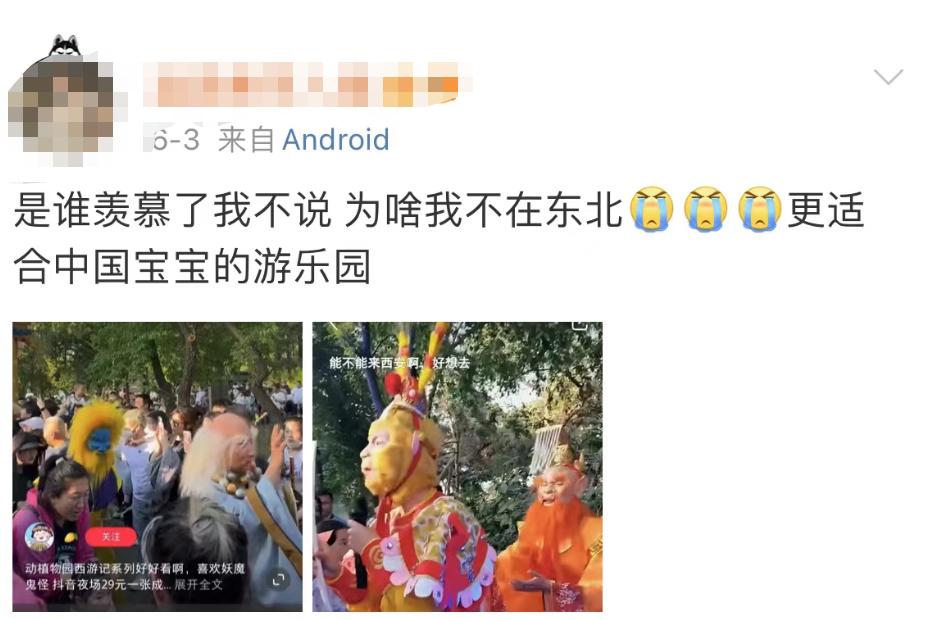 但很多外地人却并不知道,最后出圈的却是长春动植物园“业余”的西游记游行。