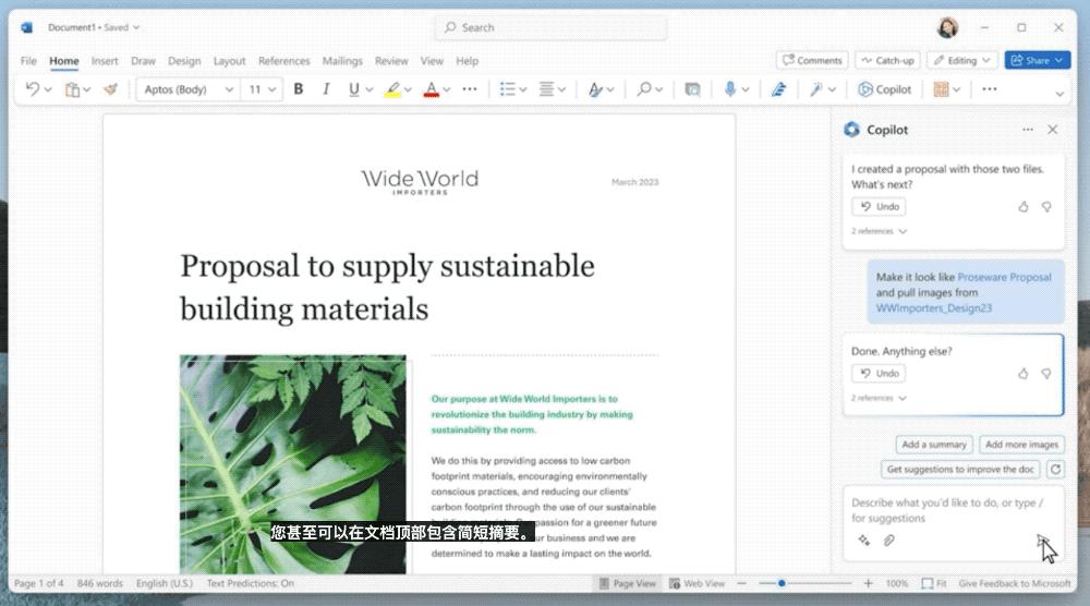 虽然市面上已有一些生成式AI应用程序专注于单一功能,如实时转录或文案生成,但微软认为Microsoft 365 Copilot拥有独特竞争力。它拥有Bing Chat Enterprise的所有功能,还可以让用户对所有内容和背景进行推理,以完成各种工作工作任务,比如从早上的会议、电子邮件和聊天记录中生成摘要发送给团队,从内部文件和网络数据中创建SWOT分析等。