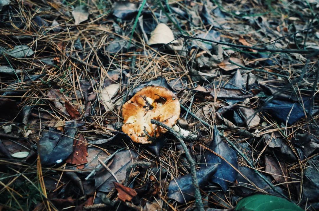 采菌子是一件非常考验专注力的事情,说是“眼观八方”也不为过。走山路的同时,你需要四处张望,盯着哪棵树下长着菌子。它们往往个头很小,还被杂草、掉落的松枝等掩盖着,只是探出个伞帽,如躲在树下的害羞的小精灵,生怕被人发现。