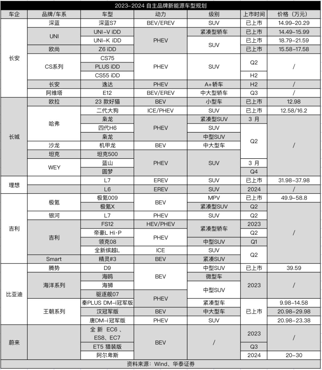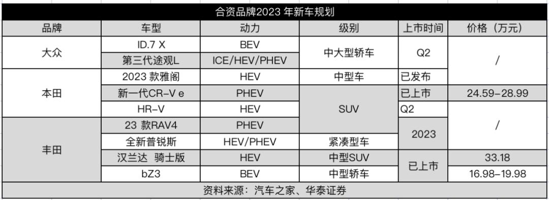 华泰证券做过一个统计,2023年大众、本田、丰田三大合资品牌,合计只有9款新车型推出,而6个自主品牌在2023-2024年则有40款新车,节奏快的不是一星半点。