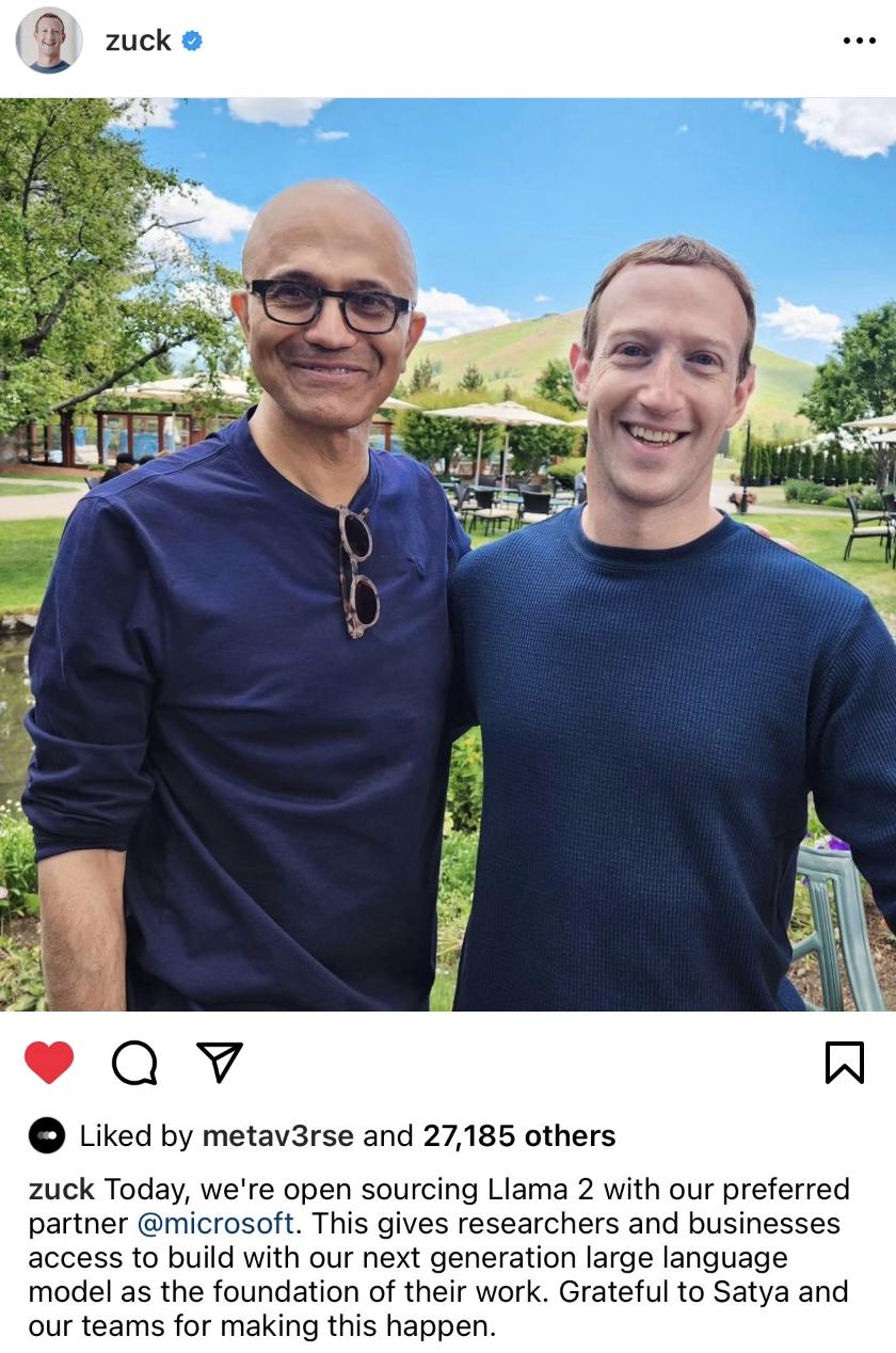 当然,Meta 也并没有将所有大厂拒绝门外。在此次官方公告中,Meta 宣布了和微软的深度合作。