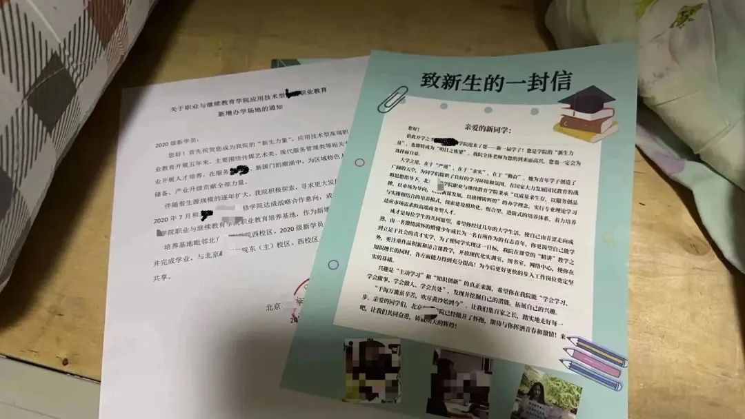 她告诉时代周报记者,她一直以为自己就读的是某学院职业与继续教育学院,录取通知书上也是这样标注的。但从2020年至今,她和同学仅在某学院校区上过几节课,招生老师提及的“全日制学习方式”,大都在校外进行。