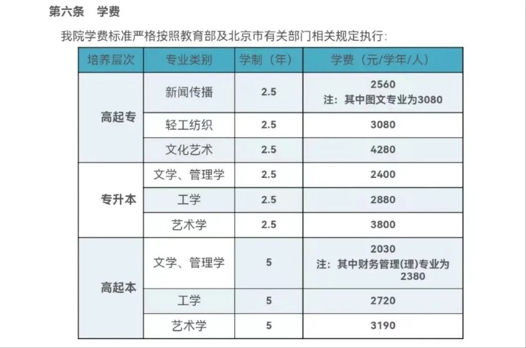△王洁入学第一年,该学院招生章程公布的学费情况 图源:学院官网