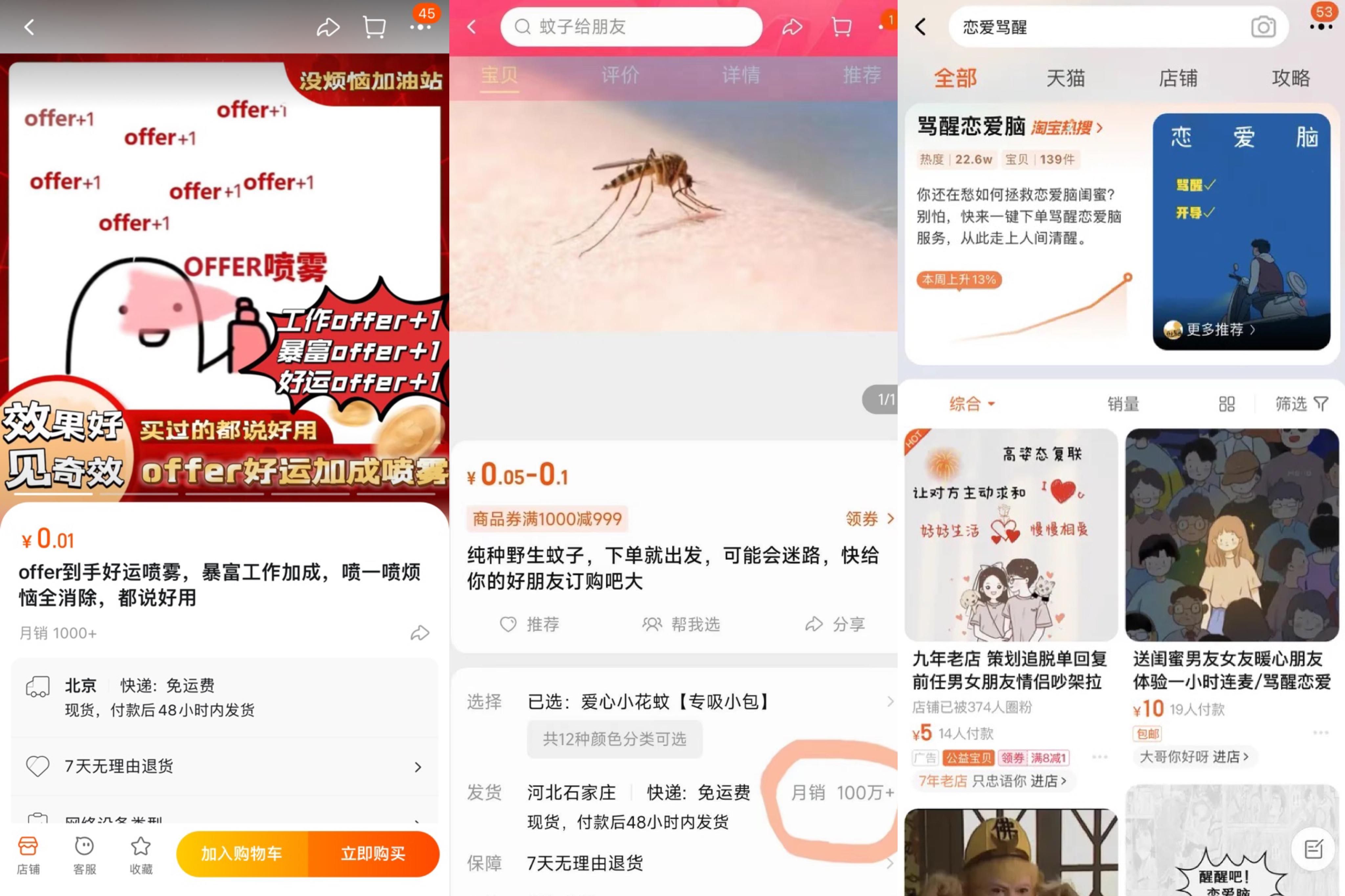 不久前,电影《消失的她》热映期间,“骂醒恋爱脑”的虚拟商品增长迅猛,其服务内容也与“虚拟蚊子”相似。