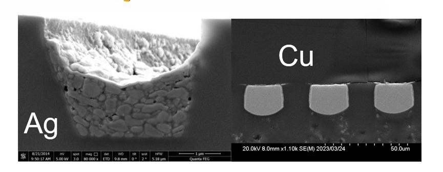 SEM电镜图:嵌入式纳米印刷技术下的银浆及纯铜线路
