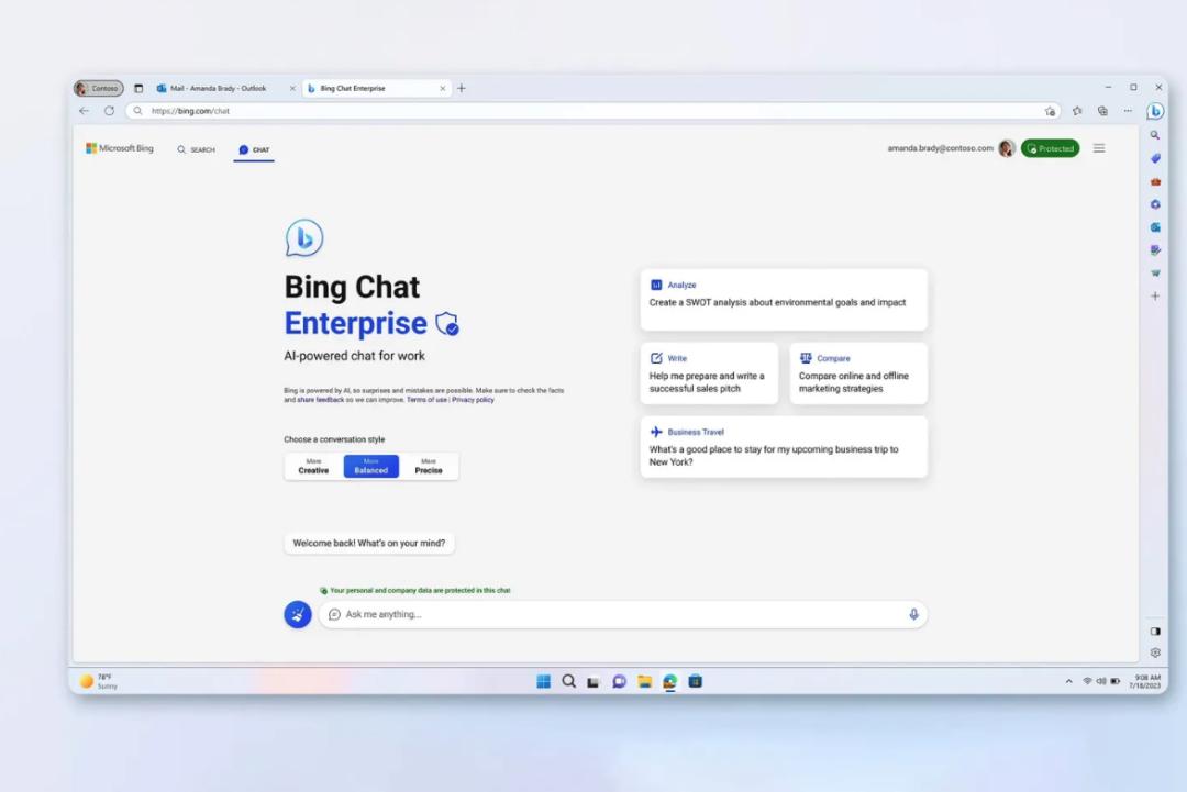 Bing Chat Enterprise 瞄准企业用户|Microsoft