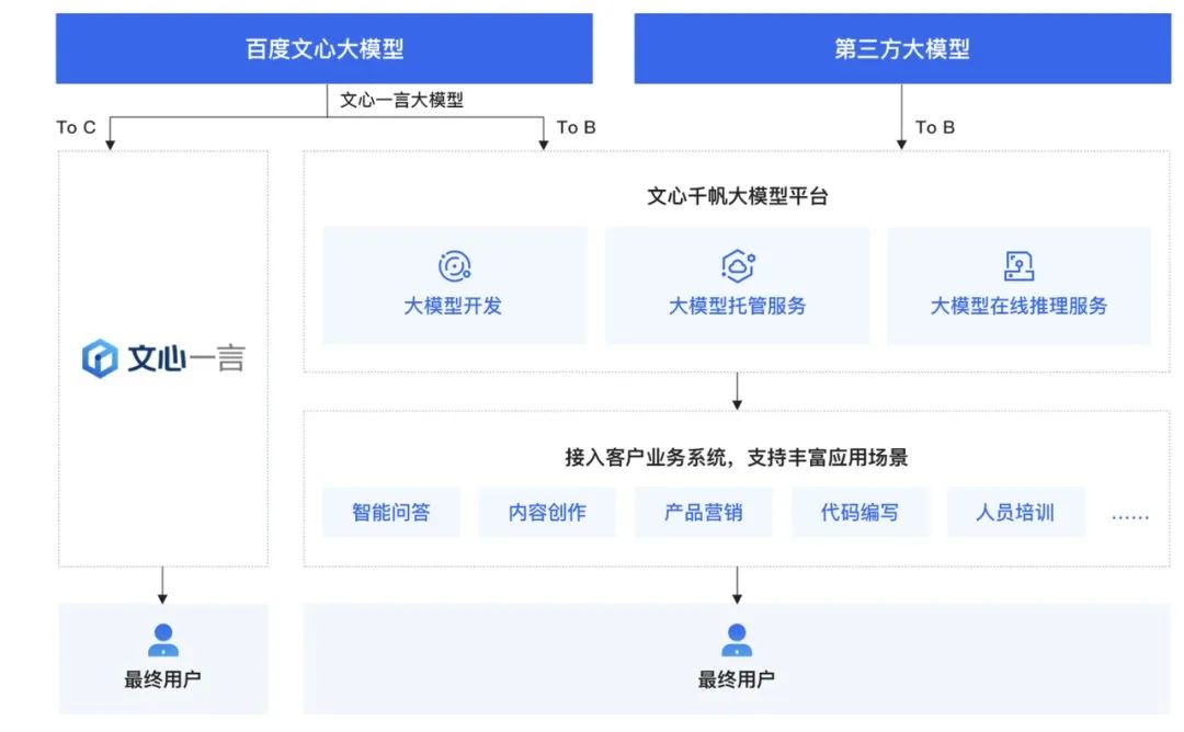 另外,文心一言只是百度的一款LLM产品,基于文心千帆平台,无论是文心大模型还是第三方模型,都可以通过该平台进行开发、精调和落地。