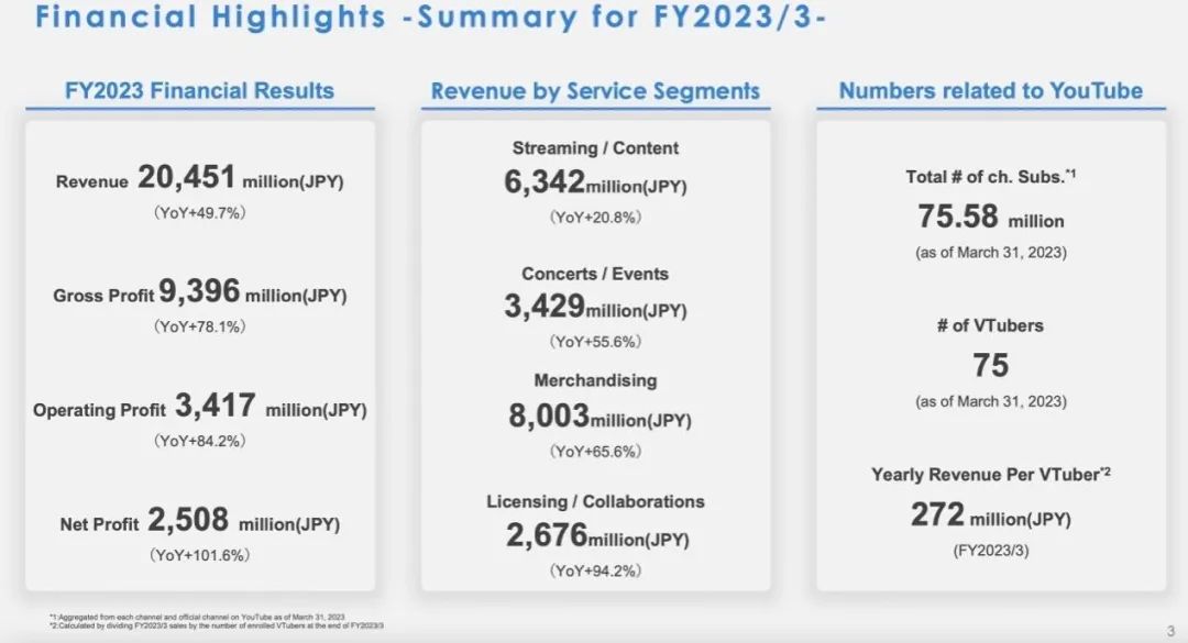 2023 财年 Hololive 财务数据 |图片来源:Hololive production