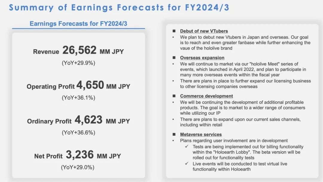 2024 财年预期数据 | 图片来源:Hololive production