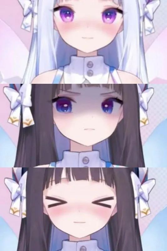 上图是 AI CAST 的 AITuber 魔法少女艾曼的几种预设表情,分别是开心,生气,脸红。而在直播过程中,艾曼就是通过判断观众聊天的情绪,然后给出这些预设的情绪反应,丰富度不够。