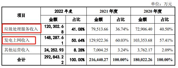 2020年至2022年,永兴股份的营业收入分别为18.43亿元、25.36亿元、32.93亿元,其中大多数来自垃圾处理服务收入和发电上网收入。