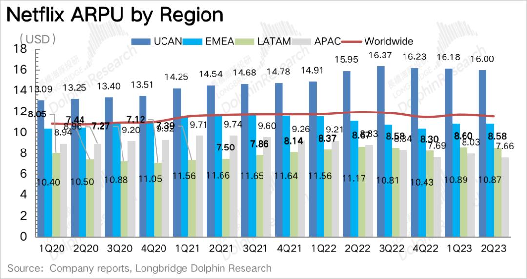 二季度因为奈飞在全球大面积的国家地区上都开始推进账户共享的限制,因此为了减少用户短期抵触情绪,奈飞二季度并没有继续对会员费进行提价。