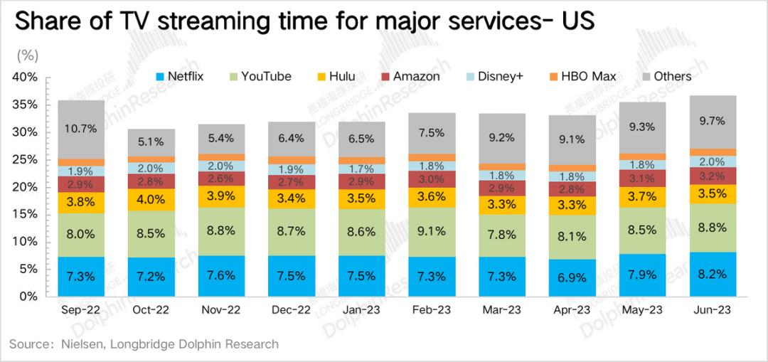 海豚君认为,过去半年竞争边际上还是略有放缓的,主要还是来源于资本市场的压力,流媒体巨头减少了一些内容投资。当然行业外的话,流媒体更多的还是在渗透率提升的红利期。
