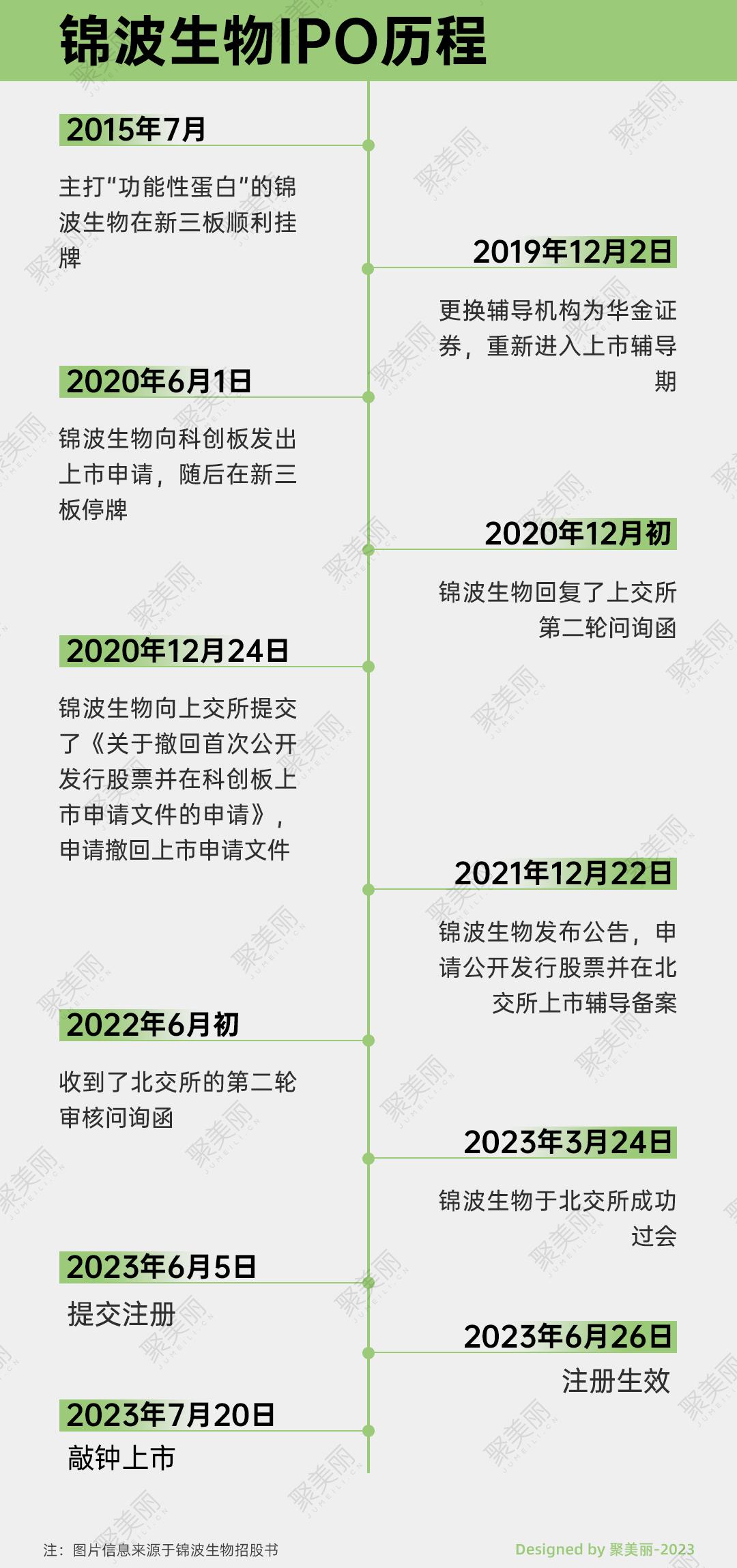 而相比巨子生物在港交所敲钟只用了半年时间,锦波生物的IPO之路更为曲折。自2020年6月1日向科创板提出上市申请,到2021年12月,锦波生物开始转战北交所,再到今日敲钟,耗费近3年时间。