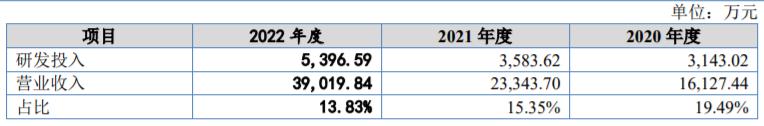 从锦波生物近三年的研发投入来看,尽管出现了下滑,但其研发投入占比一直保持在10%之上,就以占比最少的2022年来看,其研发投入为0.54亿元,占比13.83%。