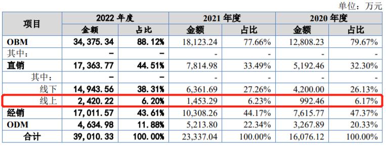 另外,我们还可以看到,锦波生物的线上渠道销售是处于弱势的,而其功能性护肤品正是主要通过线上渠道直接销售的,这也就导致了锦波生物未在C端打造出较具影响力的护肤品品牌。