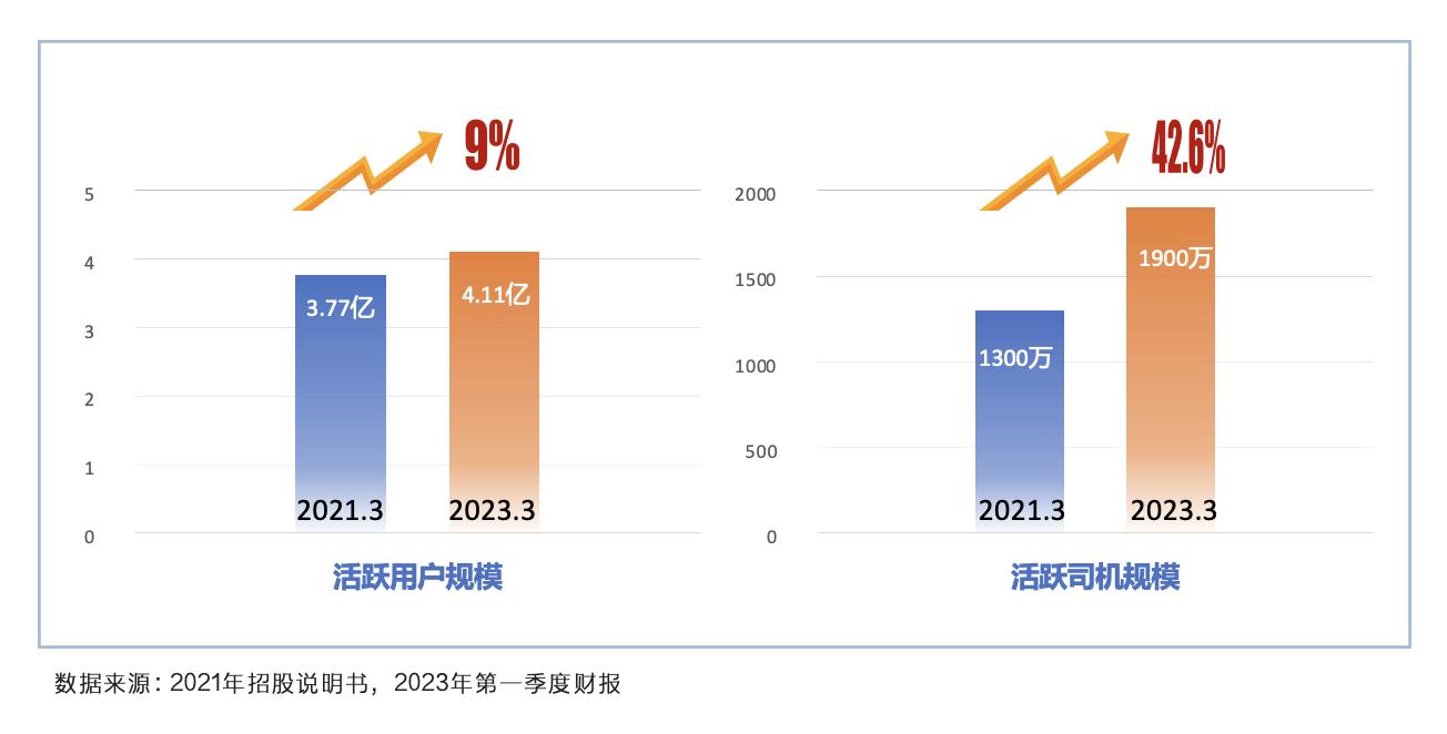 网约车市场饱和的论调一时喧嚣尘上。其实从网约车监管信息交互系统统计数据上看,发放的网约车人证、车证一直也在持续上涨。从用户需求侧的反馈上其实也能早早发现端倪,以目前行业市场份额超过70%的滴滴为例,根据其今年第一季度末财报数据显示,相较两年前招股书同期相比,滴滴活跃用户增长9%,而活跃司机增长42.6%。
