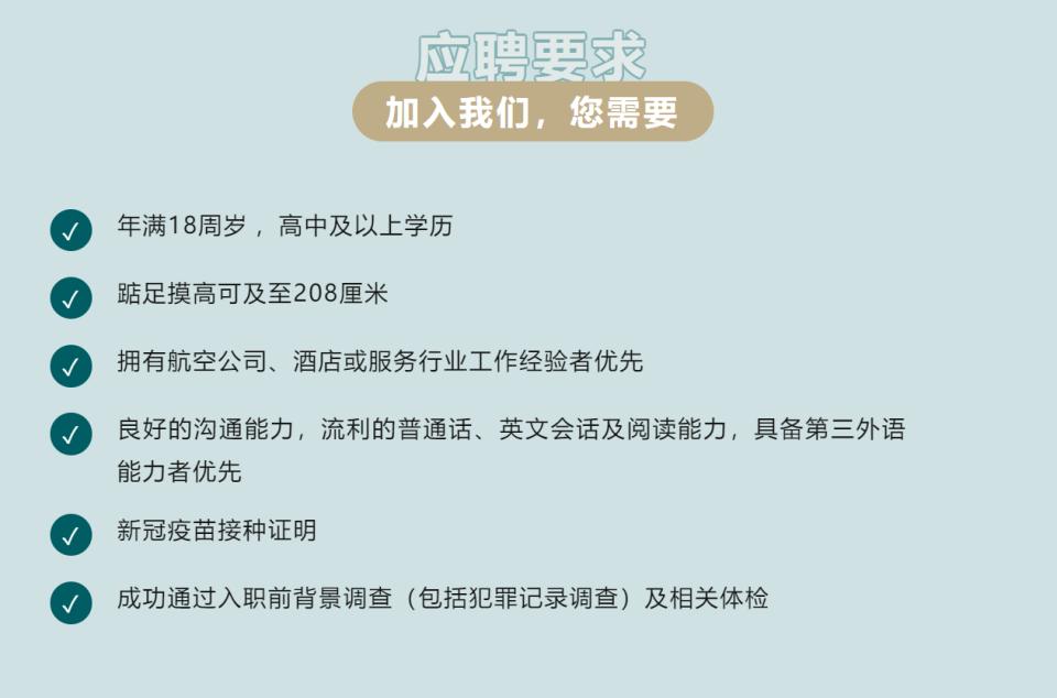 周航就被国泰航空的招聘公告吸引,“国泰不卡年龄、不卡性别、对身高也很友好,应该主要就看英语水平和客服经历。”