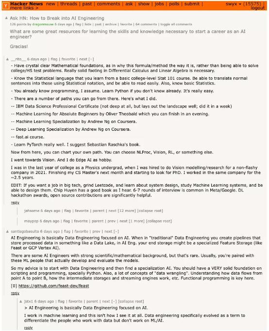 2023 年 6 月的截屏:“如何投身 AI 工程”中得票最高的答案。