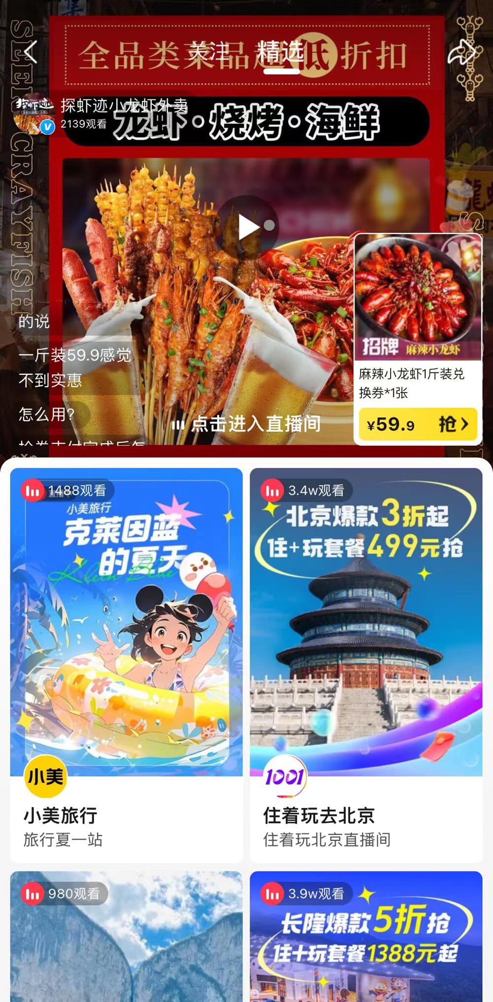最近美团App和美团外卖的首页推荐位都出现了「美团直播」的固定入口。在直播聚合页面,依次有外卖商家的「神抢手」、美团旅行直播间及多个本地商家自播直播间。