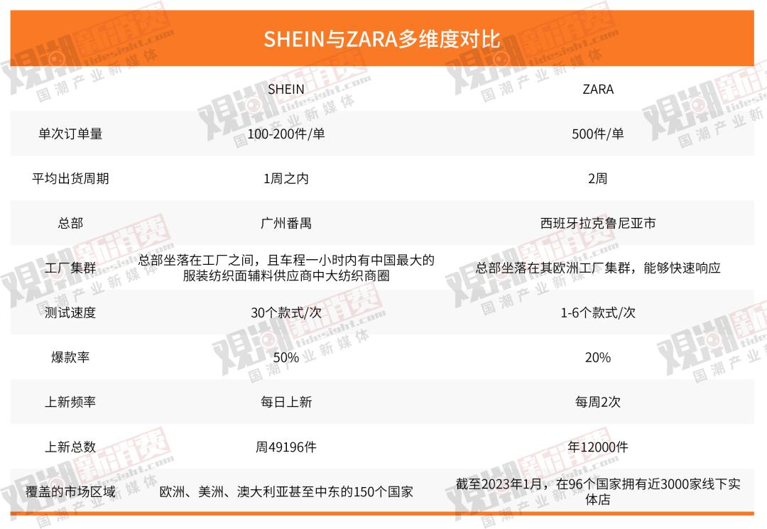 同时,由于SHEIN主营线上渠道,因此产品市场测试的速度为ZARA的5倍左右,意味着同时间段SHEIN可以测试更多服装款式,爆款率也更高。此外,高效且低成本的生产能力是SHEIN能够跑通小单快返生产模式的有力支撑。2015年,SHEIN将中国的总部从南京搬到了广州番禺,那里聚集着一大批服装中小加工厂,能够快速适应SHEIN的小单快返生产模式。