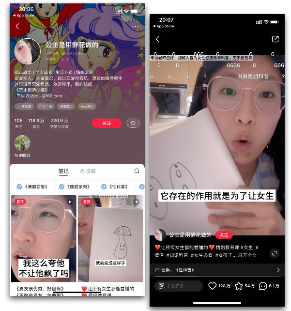 比如“让所有女生都能看懂的情侣教育课”这条视频,@公主是用鲜花做的 通过画图和实物模拟的方式深入浅出的对女性用户进行女性健康教育科普,在不失幽默风趣的同时也将健康教育知识详细的讲述给用户,从而达到科普的效果。