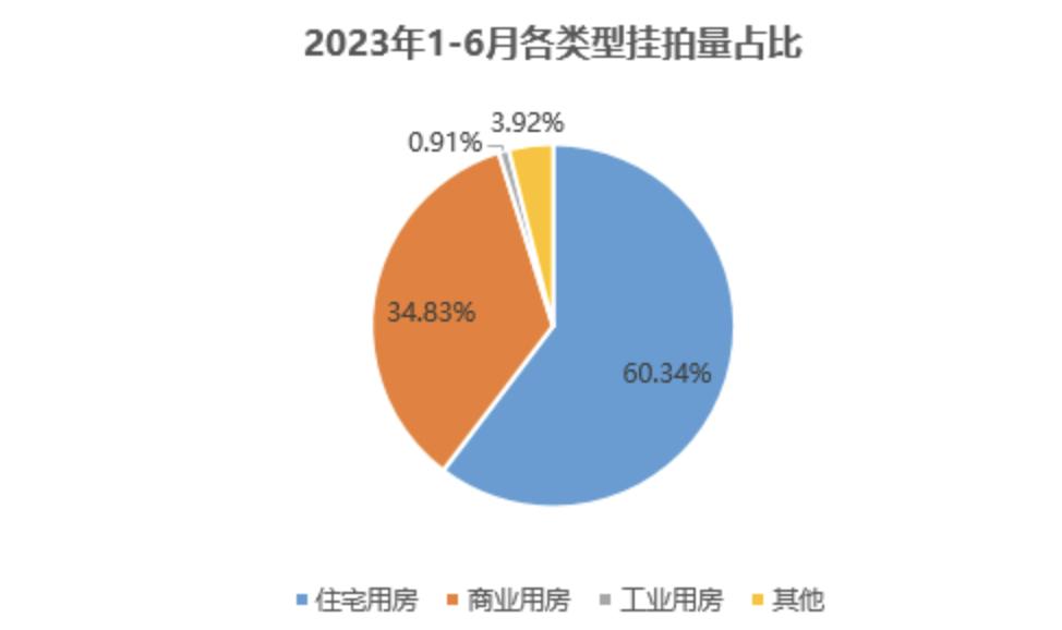 1-6月,全国法拍房中住宅用房占比最高,达60.34%,其次是商业用房34.83%,工业用房占比0.91%。