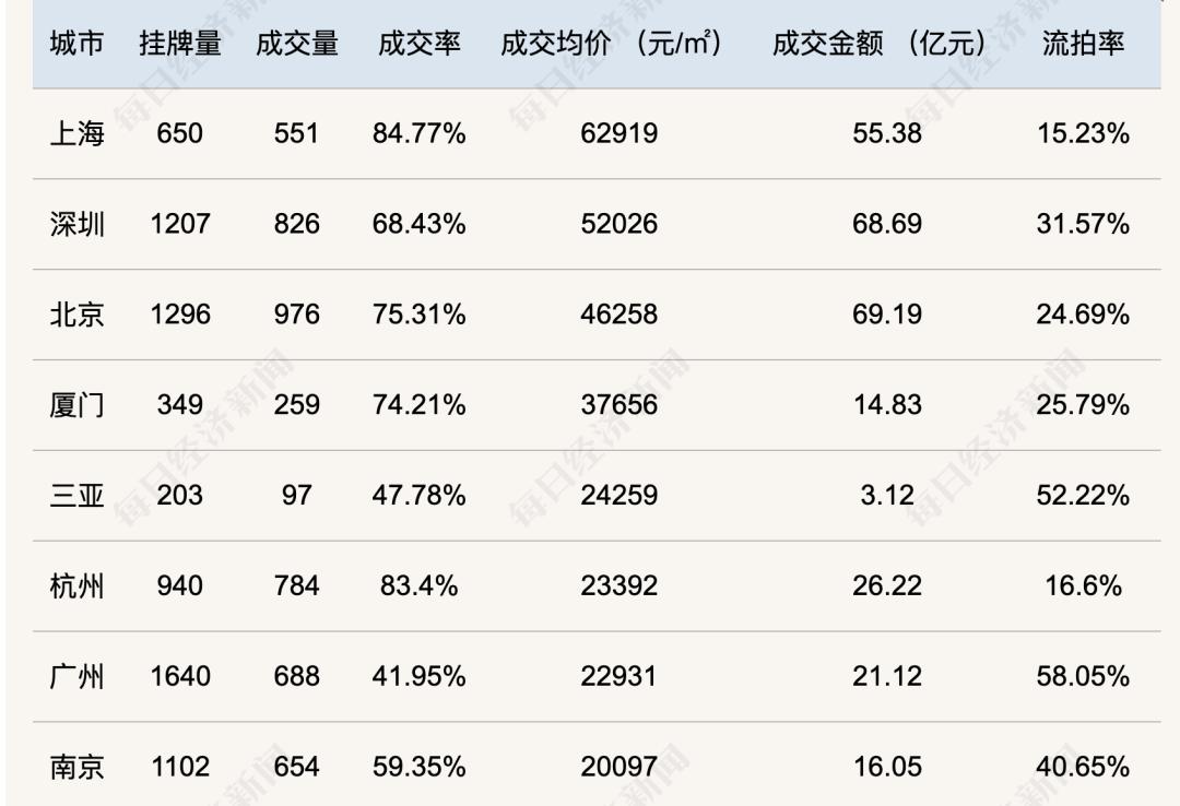 上海、深圳、北京、广州四个一线城市成交价格排名居前,其余城市如厦门、三亚、杭州、南京等均位列前十。