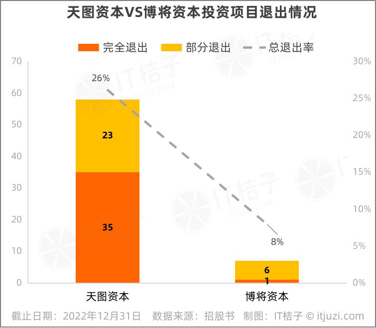 另一家VC机构天图资本实现总体退出率超1/4,其中完全退出35个项目,部分退出23个项目,两者对比起来,差距还是比较显著的。