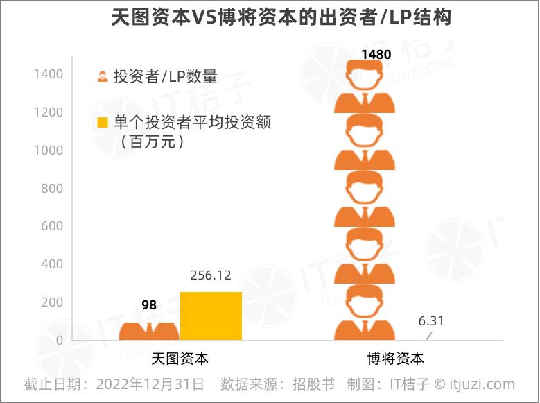 截至2022年底,博将资本共有1480名基金出资人(LP),其中99.5%为个人投资人,平均每位投资者出资金额为631万元。