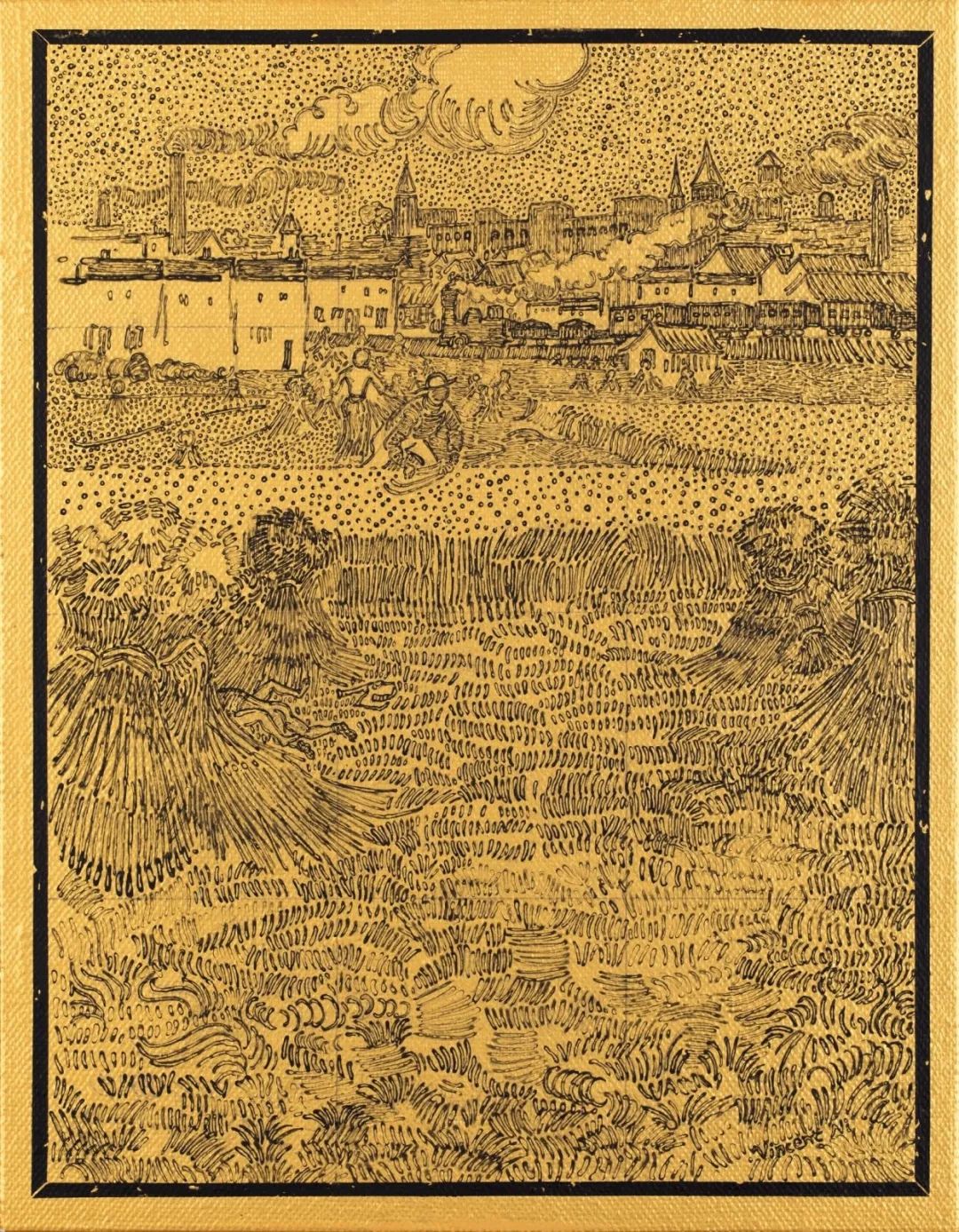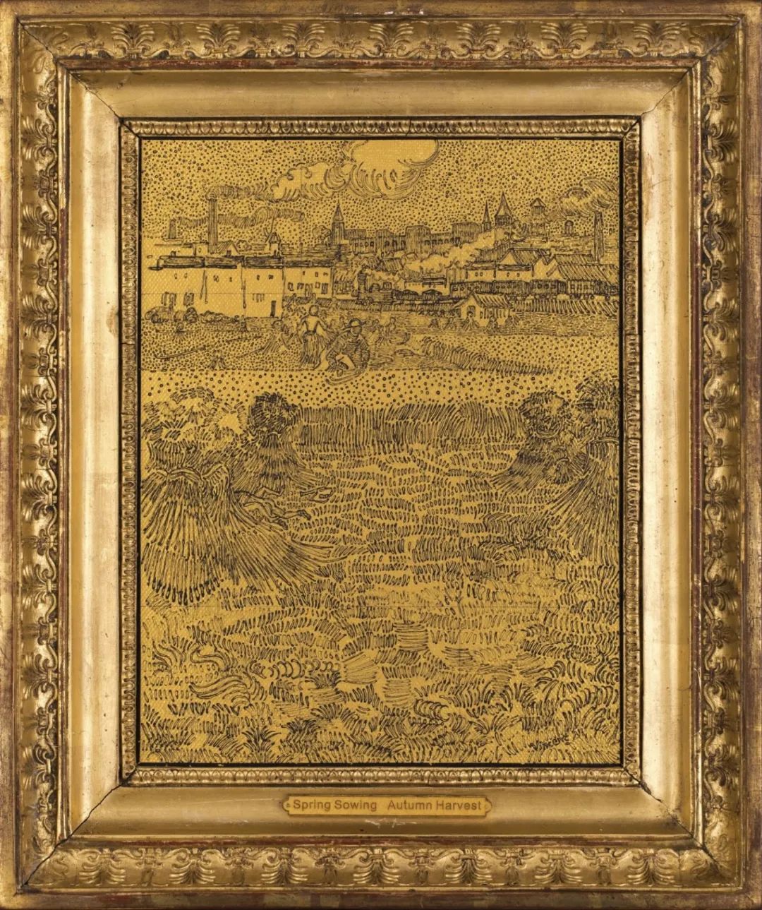 倪有鱼,《春种秋收》,布面丙烯及古董画框,37X31cm,2020