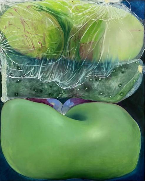 李黑地《黄瓜周五》, 布面油画,146.5 × 108 cm,2021