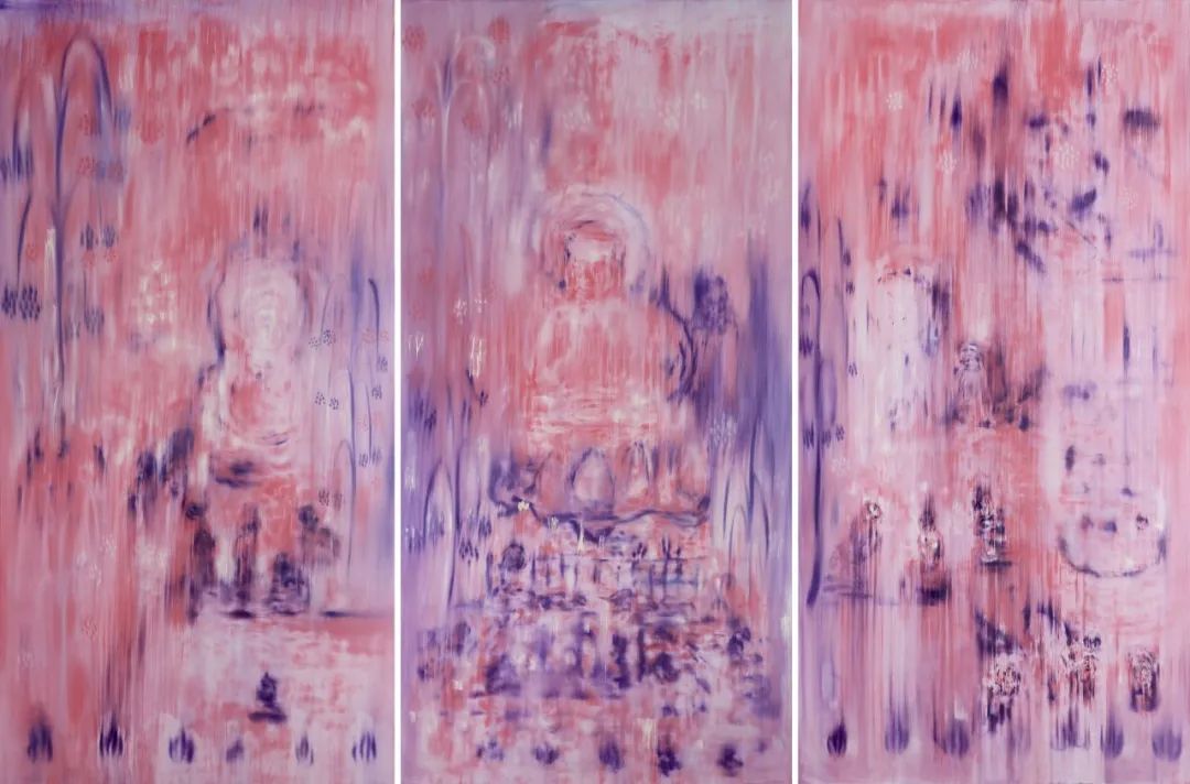 赵赵,《禅与摩托车维修艺术》,布面油画,200 × 600 cm,2019-2023