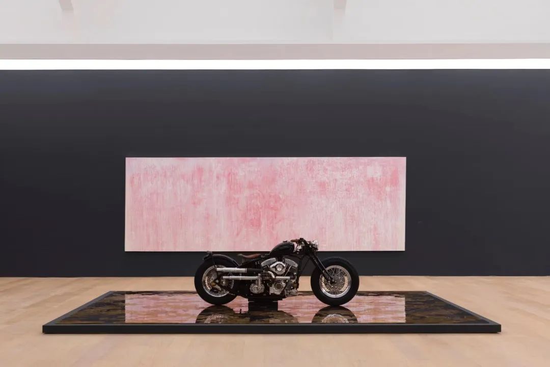 赵赵在今年3月的个展中,首先将古老东方的石窟与1980年代的摩托车置于一处,创造了一种文明传承与当代问题的对话可能性。摩托车这个现代工业产物寓意着人类“前进”的重要载具,但它精准的结构、科学的机械原理仍然无法对抗抛锚、积碳与刹车失灵。修理它是人类与旅程最直接的因果关系。当一个巨幅的中国石窟造像画作倒影在摩托车轮下时,人文主义传统与机械理性的矛盾开始创造新的“道德”与“价值观”。