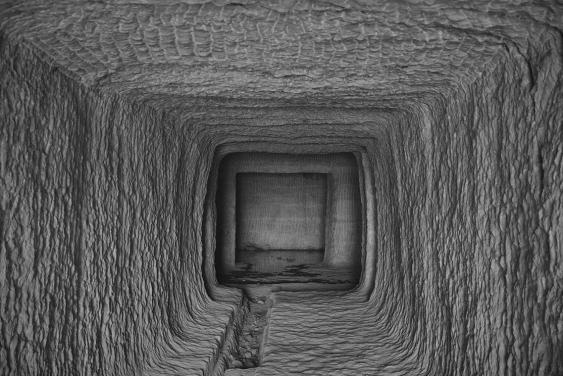 塔可:“铂金的稳定性非常高,只要让相纸完整,照片的影调永远也不会改变。”铂金粒子做成的溶液是他相机的感光原件。材料到题材,塔可大多数创作本身有着一种与时间抗争的意味。而由《诗山河考》到《碑录》,我们又在不少深不见底的洞穴中看到时间与空间交汇于作品的最深处。