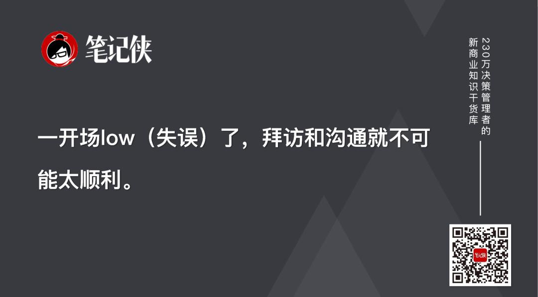 很多时候,一开场low(失误)了,拜访和沟通就不可能太顺利。