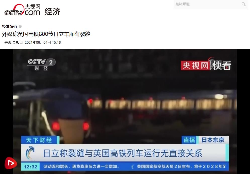 2021 年 5 月,英国的高铁车厢发现裂缝,这些由日立公司生产的车厢,使用的金属质量严重不合格,公司还篡改了出厂的检查数据。