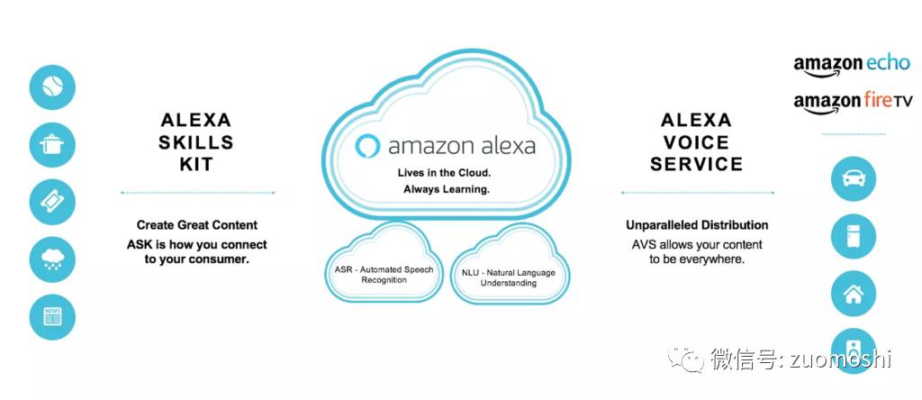 上图是亚马逊Alexa的基础架构图,为什么用它呢,因为Alexa是现在为止最像云端操作系统的一个产品。