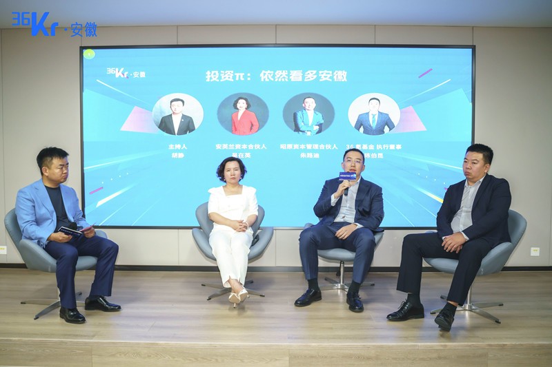 在投资π圆桌环节,安芙兰资本合伙人吴在英、昭原资本管理合伙人朱路迪、36氪基金执行董事陈伯昆与安徽数字引力科技有限公司创始人胡静,共同交流探讨赛道发展、区域投资氛围、产业增长方向等内容。