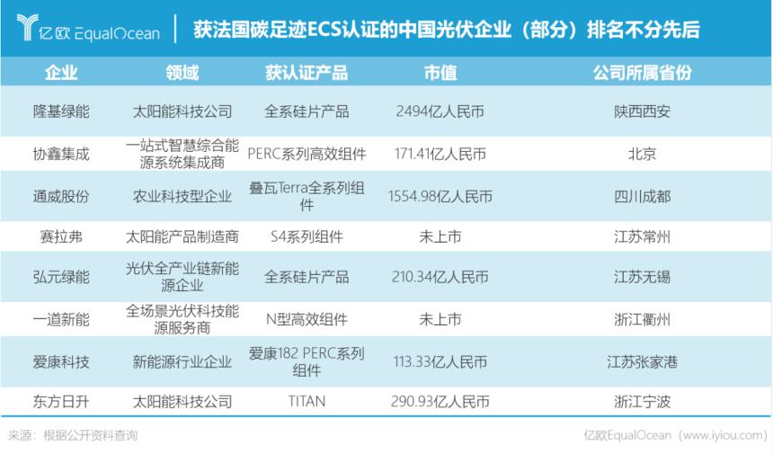而其低占比的缘由,则在于法国能源监管委员会要求100KWp以上的光伏项目产品进入法国市场,需要权威的碳足迹认证。并且在招标时按照碳足迹值分为不同等级,投标对应不同打分。碳排放值越低(一般要求二氧化碳排放小于550kg/kW),产品中标的可能性越高。