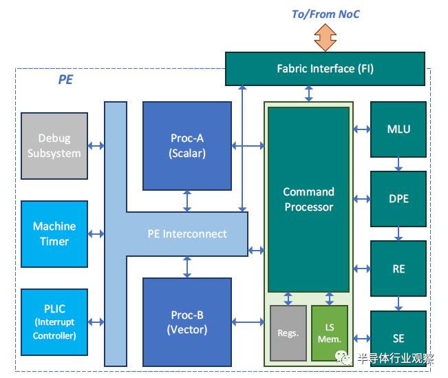 每个PE总共有五个固定功能块和一个命令处理器,该命令处理器协调这些固定功能块上的操作执行。功能单元在PE中形成了一个粗粒度的管道,数据可以从一个单元传递到下一个单元,以执行连续的操作。每个功能单元还可以直接访问PE本地存储器内的数据,执行必要的操作,并将结果写回,而无需将数据传递给其他功能单元。