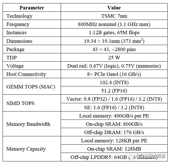 图6显示了由片上SRAM和片外DDR控制器包围的PE网格的芯片示意图,而表I列出了芯片特征和参数的摘要。