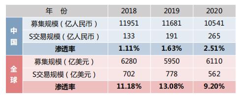 第二,近年私募股权二级市场交易量迅速提升,但渗透率与全球相比仍有显著差距。从另一层面来看,对国内S基金来说,是一个巨大机会和红利。