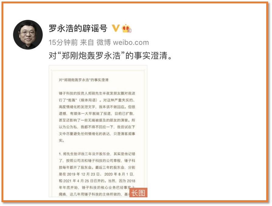 2023开年伊始的1月7日深夜,就在全国人民陆续阳转康的时候,罗永浩的多年合作伙伴、紫辉创投创始人郑刚,突然在朋友圈炮轰起罗永浩“四大罪状”。