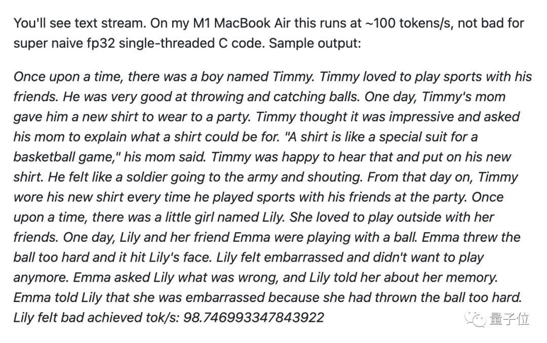 所有推理代码可以放在C语言单文件上,没有任何依赖,除了能在笔记本CPU上跑,还迅速被网友接力开发出了各种玩法。
