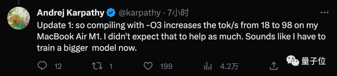 在各种优化方法加持下,karpathy也透露已经开始尝试训练更大的模型,并表示: